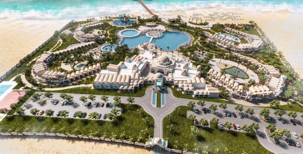 The project is a fully integrated 4-star resort with a total of 201 keys and a land area of 13,460 m². It comprises two plots: Plot (A), which includes the main building, three existing hotel buildings, a new hotel building, beachfront facilities, green areas, a marina, swimming pools, and full infrastructure works; and Plot (B), located across the road, which contains a desalination and sewage plant, a boiler room, staff housing, and accommodation facilities.