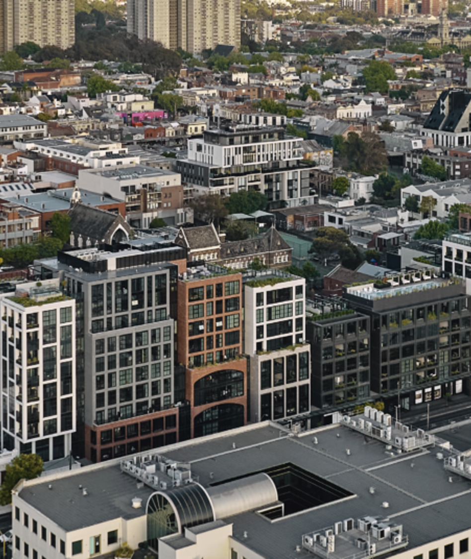 This New York–inspired development spans nine buildings, blending retail and residential along Victoria Parade, Cambridge Street, Derby Street, and Wellington Street. The ground level offers 200 m of street frontage with 11 retail tenancies, commercial offices, a community arts space, and 241 apartments.